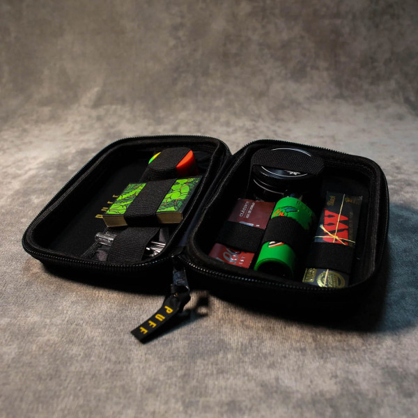 Your utensils are optimally protected during transport, as the material used is made of ethylene vinyl acetate (E/VA), which is considered to be particularly flexible and at the same time particularly stable. A PUFF sticker and a zip bag made of Mylar film are included.