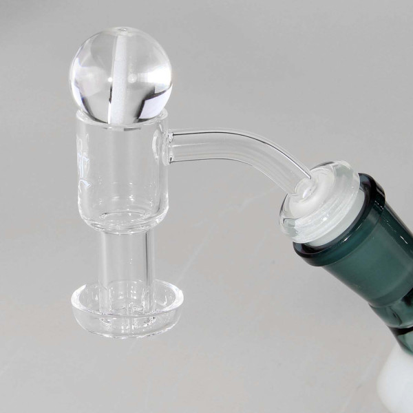 The additional use of a carb cap (smoke dome) with which the air supply can be controlled optimizes the vapor development even further. The enclosed ball, also called a dab marble, completely closes the banger. As a result, inserted dab pearls rotate particularly well during inhalation and thus further heat up the vaporization vigorously. This way, you get the most flavourful and richest vapor even from small dabs.