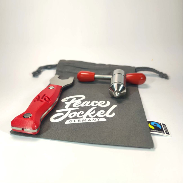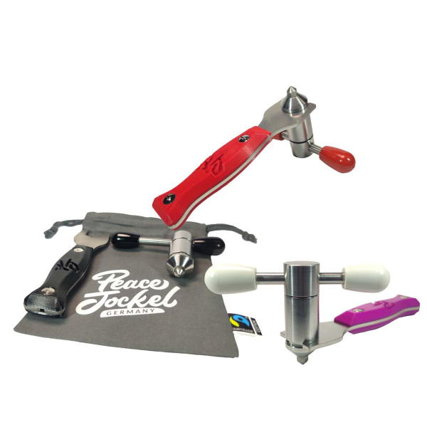 Der PEACE JOCKEL hat eine 1,0mm große Mehrzweckdüse. Diese ist genau wie der Zylinder sowie der Kolben aus bestem Edelstahl und darf in der Geschirrspülmaschine gereinigt werden. Der Halter, versehen mit einer JOCKEL-Gravur, kann einfach mit einem weichen Tuch abgewischt werden.